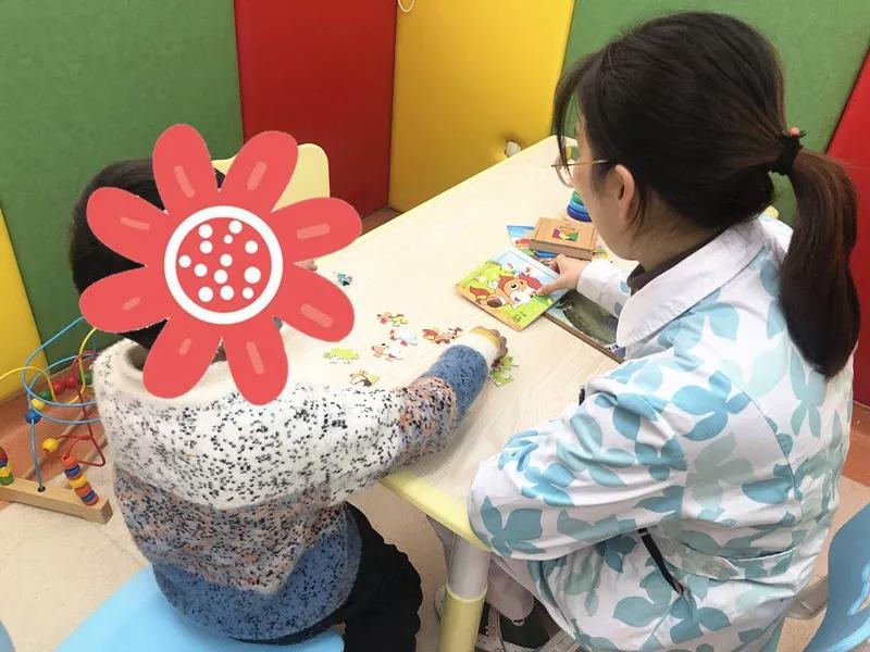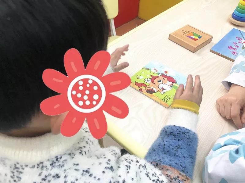 在拼图的时候,奇奇一开始拼得不错,后来遇到颜色相近的板块,就有点不得要领。一拼不上注意力就有点“跑”,梦梦老师见状轻声提醒:“眼睛在哪里啊?看看这一块是什么?”