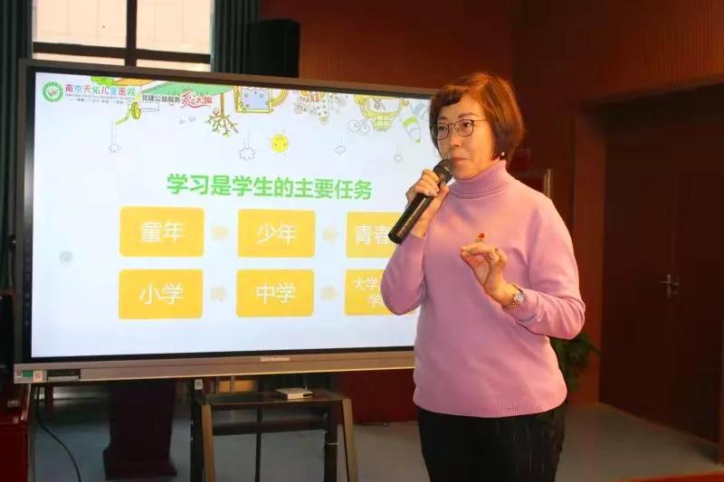 12月21日,南京天佑儿童医院公益讲座走进南京市栖霞区青秀城小学,为青秀城小学一、二年级近300位孩子家长带来了一场“学习不烦恼”专题健康教育知识讲座。